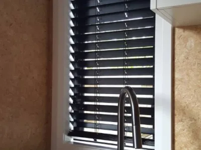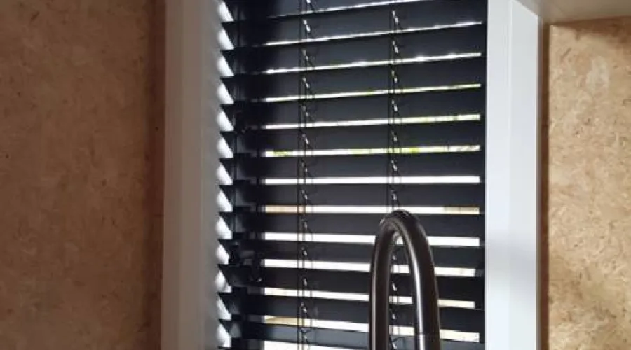 If you are ordering for a window next to a front or back door you could request hold down clips in the comment section of the order. We will supply small clips for you to fasten blind securely at the bottom. Also, usually this scenario is technically inside fit but you could request a return for the side of the blind that is exposed to the room. A return is a side piece of pelmet to cover the exposed side of the track. Returns are always supplied with outside fit 50mm Venetians. Please note the timber slat ends are not painted though.
